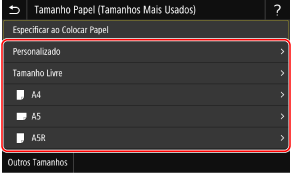 Prima [Outros Tamanhos] e, em seguida, selecione o tamanho de papel na lista apresentada.