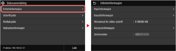 Betjeningspanelet bruker en berøringsskjerm. Berør knappene og elementene som vises på skjermen med fingrene når du vil bruke dem.