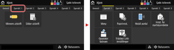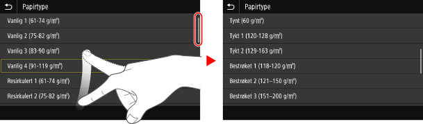 Berør skjermen og sveip med fingerspissen. Skjermbildet flytter seg i den retningen du sveipte fingeren. For eksempel flytter skjermbildet [Hjem] seg til kategorien i retningen du sveipte fingeren.
