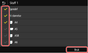 Merk av i boksene for hvilke papirformat som skal skjules, og klikk på [Bruk].