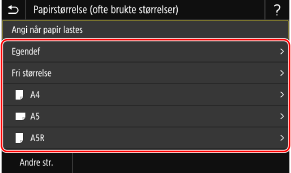 Trykk på [Andre str.] og velg papirformat fra listen som vises.