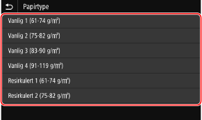 Velg papirtypen som skal registreres.