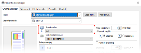 I [Sidestørrelse] på fanen [Grunninnstillinger] velger du papirformatet for dokumentet.