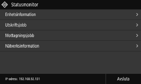 När du trycker på [Statusmonitor] på skärmen [Hem] och andra ställen öppnar du den här skärmen.