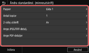 [Ändra standardinställningar (minnesutskrift)].