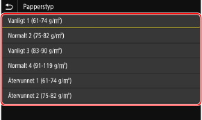 Om du ofta behöver byta papperstyp när du fyller på papper kan du ange [Fritt] för att spara tid genom att inte behöva ändra inställningen varje gång. Notera dock att med den här inställningen görs utskrifter även när inställningen för papperstyp i skrivardrivrutinen inte stämmer överens med den papperstyp som har fyllts på i enheten.