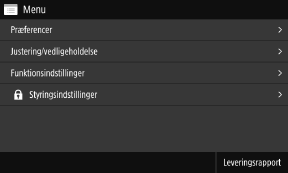 Denne skærm vises, når du trykker på [Menu] på skærmen [Hjem]. Brug denne skærm til at konfigurere maskinens forskellige indstillinger.