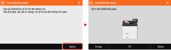 Der vises meddelelser på skærmen, hvis der opstår fejl, og hvis maskinen mangler papir eller toner i tonerpatronerne.