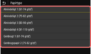 Vælg typen for det papir, der er lagt i papirskuffen.