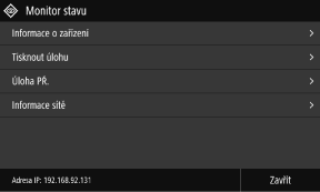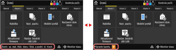 ] na ovládacím panelu. Ve výchozím nastavení se obrazovka [Domů] zobrazí po zapnutí napájení, ihned po zavření úvodní obrazovky a ihned po přihlášení. Obrazovka [Domů]