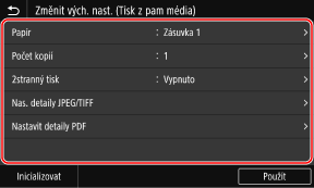 [Změnit výchozí nastavení (Tisk z paměťového média)].