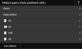 Stiskněte tlačítko [Jiné velikosti] a ze zobrazeného seznamu vyberte formát papíru.