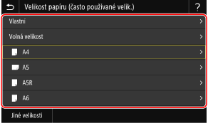 Stiskněte tlačítko [Jiné velikosti] a ze zobrazeného seznamu vyberte formát papíru.