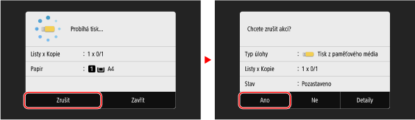 Pro zrušení tisku se řiďte pokyny na obrazovce.