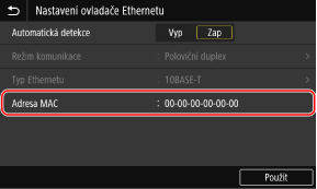 Zadejte adresu IPv4 síťového zařízení a stiskněte tlačítko [Použít].