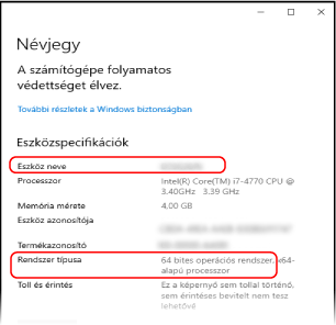 Tekintse meg a számítógép nevét és az operációs rendszer verzióját az [Eszközspecifikációk] részen.