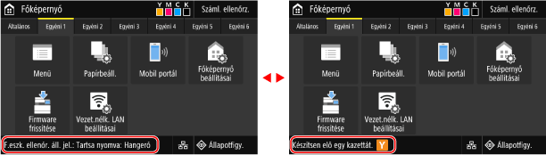] gombját. Alapértelmezett beállításként a [Főképernyő] jelenik meg a készülék bekapcsolásakor, a kezdőképernyő bezárása után és közvetlenül a bejelentkezés után. [Főképernyő] képernyő