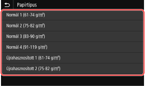 Ha gyakran kell módosítania a betöltendő papírt, válassza a [Tetszőleges] lehetőséget; ez csökkenti a beállítás módosításához szükséges lépések számát. Vegye azonban figyelembe, hogy ezzel a beállítással a készülék akkor is nyomtathat, ha a nyomtató-illesztőprogramban megadott papírtípus-beállítás nem egyezik a készülékbe ténylegesen betöltött papír típusával.