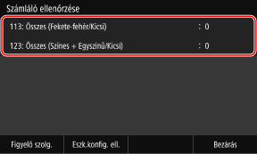A Számláló ellenőrzése képernyőn elérhető műveletek