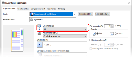 Az [Alapbeállítások] lap [Oldalméret] pontjánál válassza ki a dokumentum papírméretét.