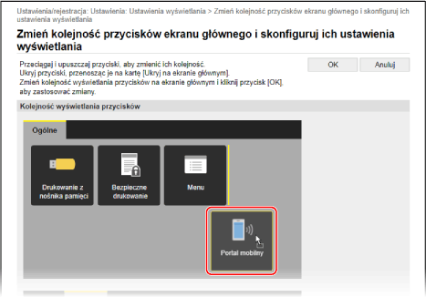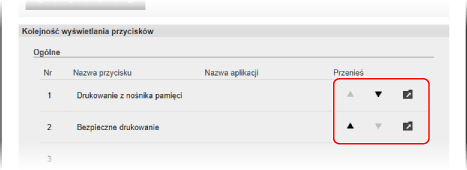 Aby zmienić kolejność wyświetlania przycisków przez ich przeciąganie, kliknij [Edytuj w widoku przycisków].