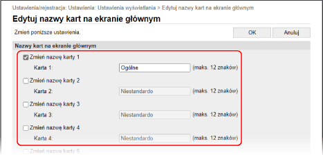 Zostanie wyświetlony ekran [Edytuj nazwy kart na ekranie głównym].