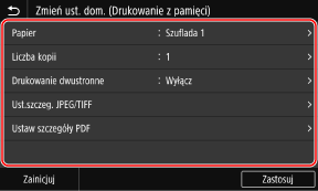 [Zmień ustawienia domyślne (drukowanie z nośnika pamięci)]