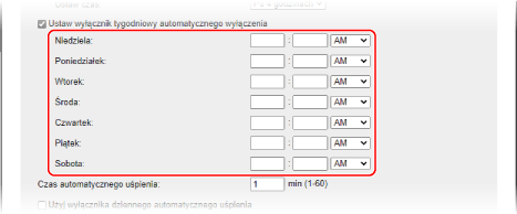Zaznacz pole wyboru [Ustaw wyłącznik tygodniowy automatycznego wyłączenia].