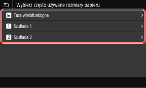 Zostanie wyświetlony ekran [Wybierz często używane rozmiary papieru].