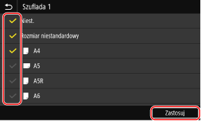 Odznacz pola wyboru rozmiarów papieru, które mają być ukryte, a następnie kliknij [Zastosuj].