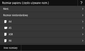 Naciśnij [Inne rozmiary], a następnie wybierz rozmiar papieru z wyświetlonej listy.