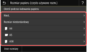 Naciśnij [Inne rozmiary], a następnie wybierz rozmiar papieru z wyświetlonej listy.