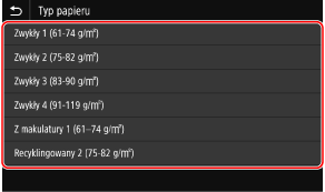 Jeśli często musisz zmieniać papier, który ma być załadowany, ustaw na [Niestandardowy]; zmniejszy to liczbę kroków wymaganych do zmiany ustawień za każdym razem. Należy jednak pamiętać, że to ustawienie umożliwia urządzeniu wykonywanie wydruków nawet wtedy, gdy występuje niezgodność między ustawieniem rodzaju papieru w sterowniku drukarki a rodzajem papieru faktycznie załadowanym do urządzenia.