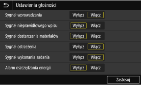 ) na panelu sterowania, wyświetlony zostanie ekran [Ustawienia głośności].
