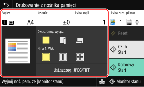 Zostanie wyświetlony ekran ustawień drukowania z nośników pamięci.