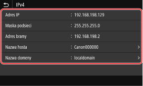 Wyświetlanie adresu IP ustawionego dla urządzenia