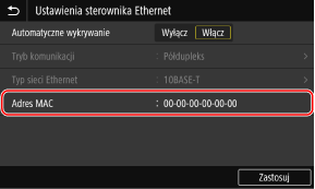 Gdy urządzenie jest podłączone do przewodowej sieci LAN, możesz zobaczyć ustawiony dla niego adres MAC.