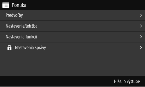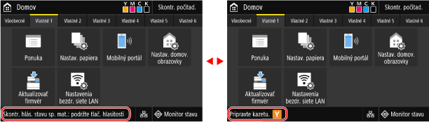 ] na ovládacom paneli. Predvolene sa obrazovka [Domov] zobrazí po zapnutí napájania a ihneď po zatvorení obrazovky spúšťania a po prihlásení. Obrazovka [Domov]
