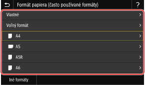 Stlačte položku [Iné formáty] a zo zobrazeného zoznamu vyberte veľkosť papiera.