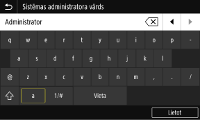 Aizmugure* Varat ievadīt rakstzīmes ar vadības paneļa starpniecību, kad iekārtai pievienota USB tastatūra.