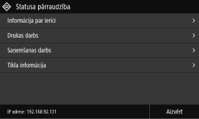 Šis ekrāns tiek parādīts, nospiežot [Statusa pārr.] ekrānā [Sākums] un citās atrašanās vietās.