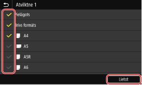 Notīriet paslēpjamo papīra formātu izvēles rūtiņas un noklikšķiniet uz [Lietot].