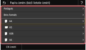 Nospiediet [Citi izmēri] un parādītajā sarakstā atlasiet papīra formātu.