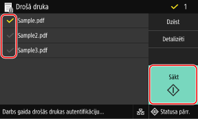 Atzīmējiet drukājamo drošo datu izvēles rūtiņu un piespiediet [Sākt].