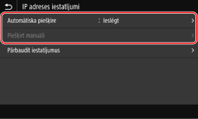 Tiek parādīts ekrāns [IP adreses iestat. (automāt. piešķire)].