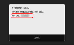 Ja bezvadu LAN maršrutētājs atbalsta WPS PIN koda režīmu, varat izveidot savienojumu, reģistrējot iekārtā ģenerēto PIN kodu bezvadu LAN maršrutētājam. PIN koda reģistrēšanai izmantojiet datoru.