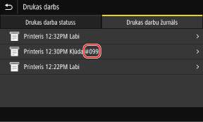 Ja nevar veikt drukāšanu vai saņemt i-faksu, vai rodas cita kļūda, darbu žurnālfailā tiek parādīts kļūdas kods (trīsciparu skaitlis, kas sākas ar “#”).
