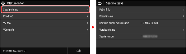 Kui puudutate üksuse nime või nuppu, saab selle valida. Valitud kuva avatakse või valitud funktsioon teostatakse.