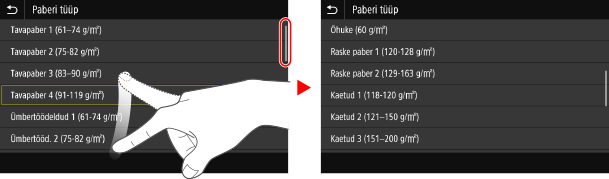 Kui ekraanile ilmub kerimisriba, näitab see, et seal on üksusi või teavet, mida ei saa tervikuna ekraanil kuvada. Libistage või lohistage ekraani sõrmeotsa liigutamise suunas.