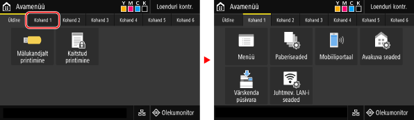 Puudutage ekraani ja libistage sõrmeotsa. Ekraan liigub sõrmega libistamise suunas. Näiteks kuva [Avamenüü] liigub sõrmega libistamise suunas asuvale vahekaardile.